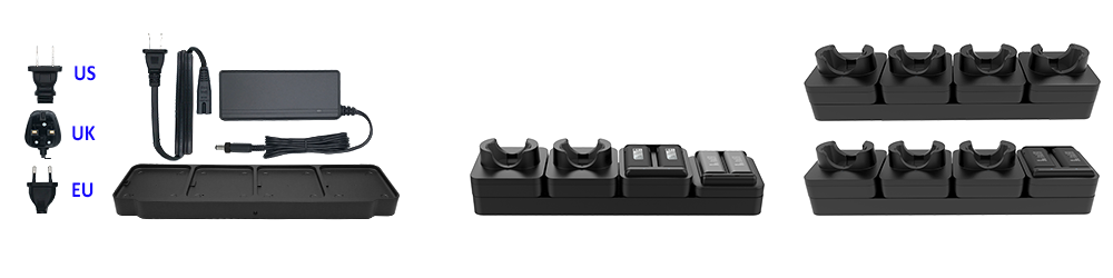 The above two Single Charging Cradles need to use together with the power supply 8E00-00040110/ 8E00-00040120/ 8E00-00040130/ 8E00-00040140 US/EU/UK/Chinese DC power supply
